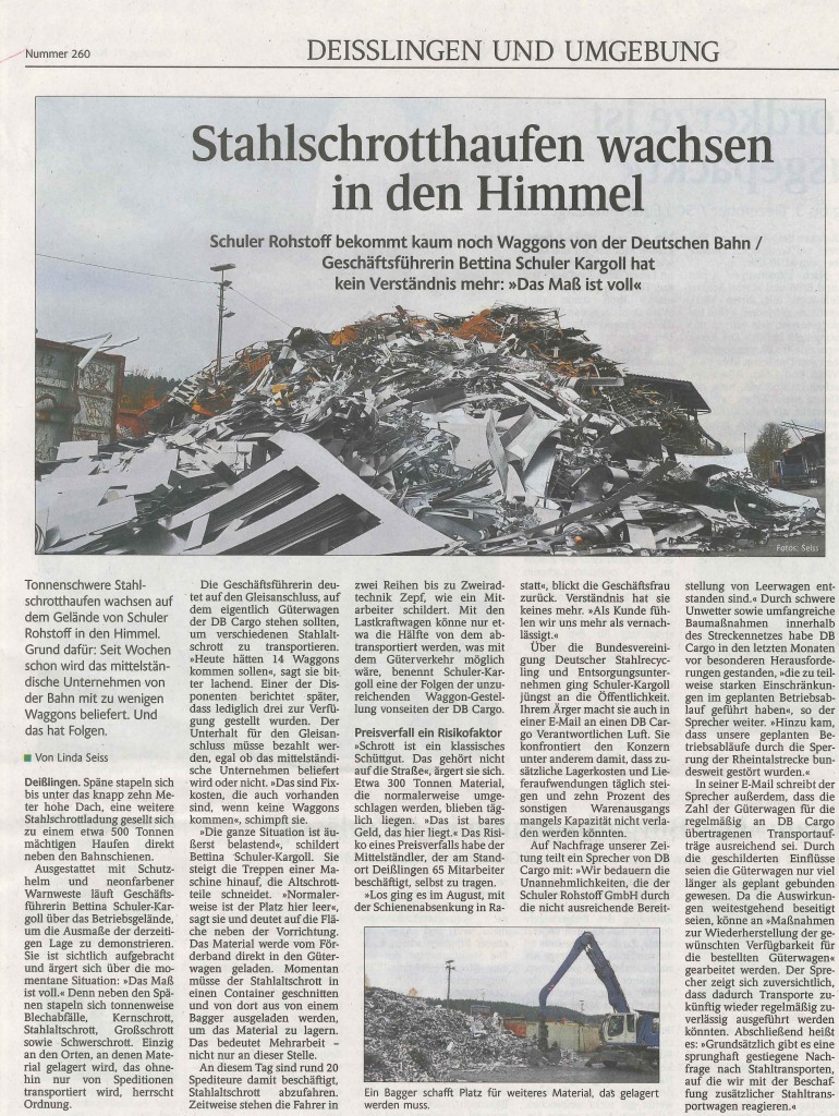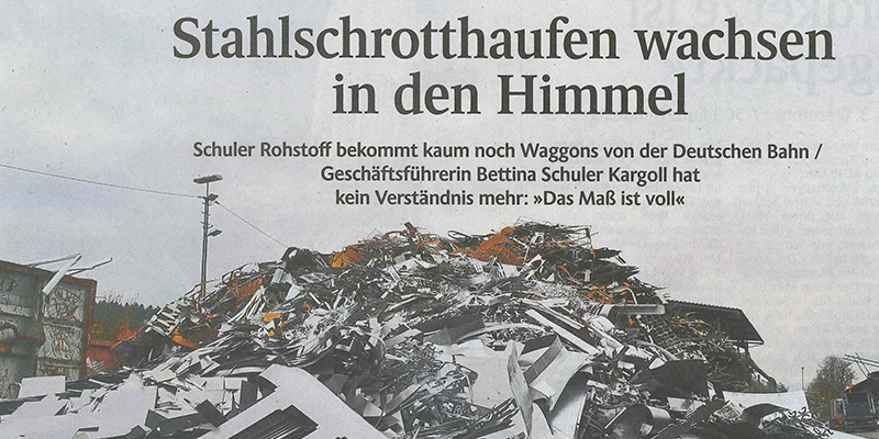 Anfang Oktober war es die Meldung über fallende Schrottpreise in Höhe von 30 bis 40 Euro pro Tonne, nachdem die türkischen Verbraucher sich am Markt billiger mit Stahlschrott eindecken konnten. Dann war es der Engpass bei der Versorgung der Stahlwerke mit Graphitelektroden und deren rasante Preissteigerung. Und schließlich die sich zuspitzenden logistischen Probleme, verursacht durch das Absenken der Schienen in Rastatt. Auch wenn dieser wichtige Streckenabschnitt für den Bahnverkehr seit Anfang Oktober wieder frei gegeben ist, so spitzt sich die Lage im Güterverkehr, insbesondere für die Stahlschrottbranche, weiter zu. Die Bahn ist hoffnungslos überfordert. Es gibt weder Waggons noch Zulaufnummern für die Streckenabschnitte Richtung Italien. Ganz aktuell sorgt auch noch ein Betriebsunfall am Brenner für eine Sperrung des Schienenverkehrs. Die Folgekosten sind für die Branche sehr hoch und zusätzlich belastend.
