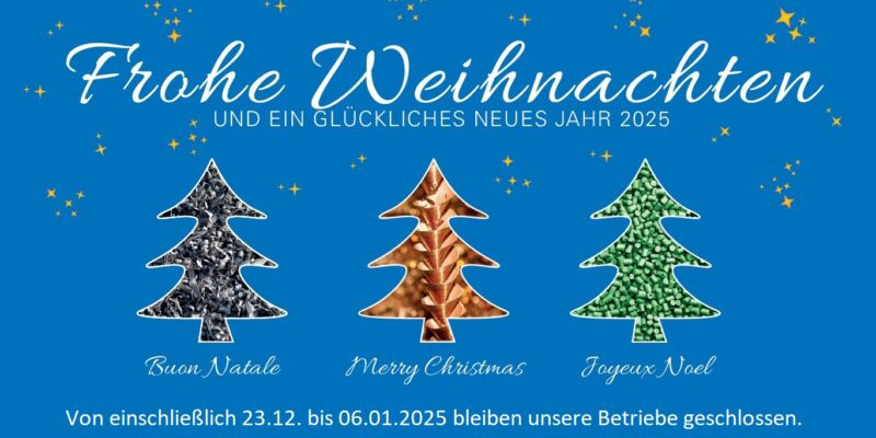 von einschließlich 23.12.2024 bis 06.01.2025 bleiben unsere Betriebe geschlossen.