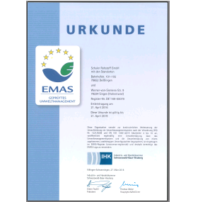 Beide Standorte in Deisslingen und in Singen sind gemäß den gesetzlichen Vorgaben durch die CORE Umweltgutachter GmbH validiert.
