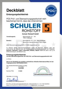 Die Schuler Rohstoff GmbH bietet Ihnen als qualifizierter Entsorgungsfachbetrieb (§56 ff KrWG), als Erstbehandlungsanlage für Elektronikschrott (§21Abs. 3 ElektroG) und für die Erlaubnis der Annahme von Gewerbeabfällen und Abfallgemischen (§ 6 Abs. 1 GewAbfV) maximale Rechtssicherheit bei der Entsorgung Ihrer Abfälle.